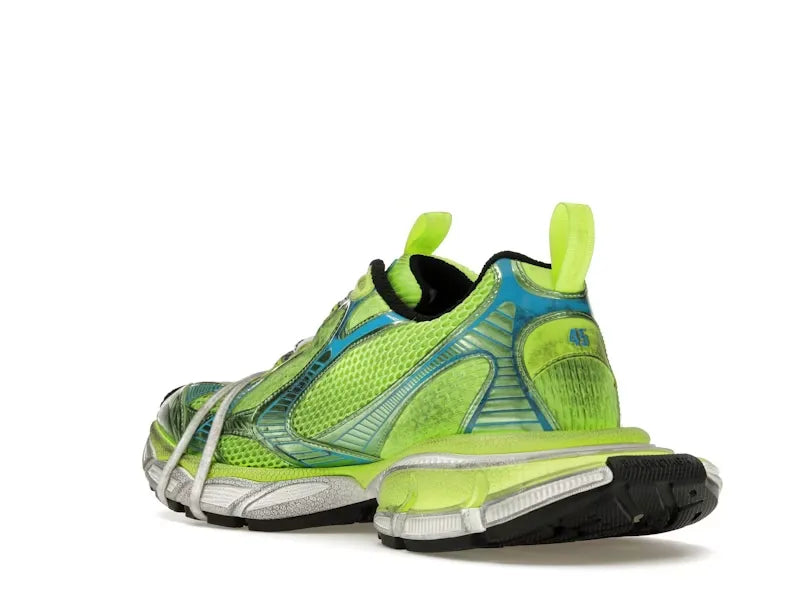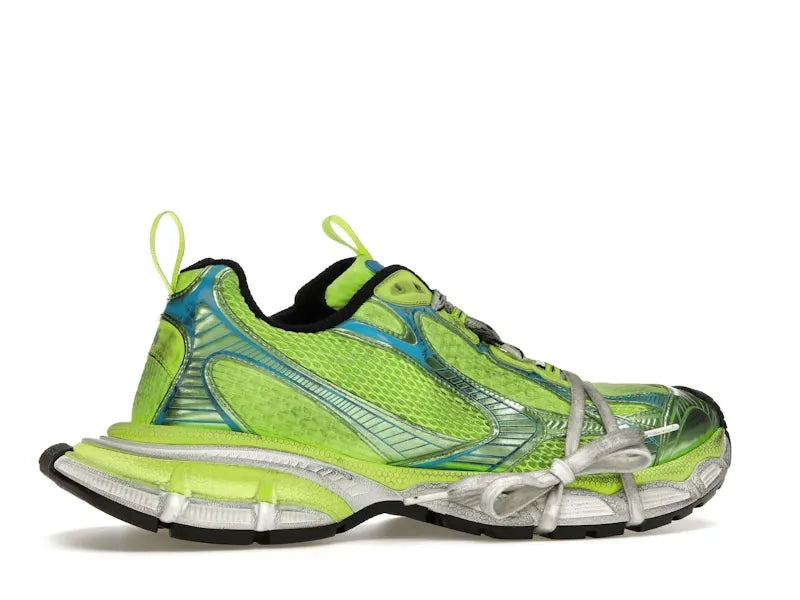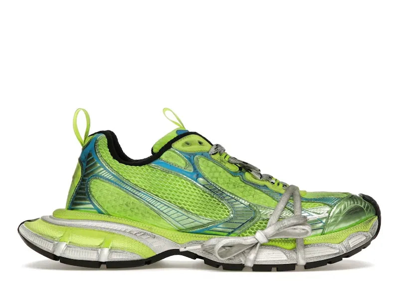 Las Balenciaga 3XL “Fluo Yellow/Blue/Black” irradian actitud urbana creativa con una paleta vibrante y diseño técnico sobresaliente. Confeccionadas en una estructura multicapa que incluye malla, nylon y goma, este modelo se distingue por su energizante combinación de amarillo neón, azul y negro, proyectando una estética dinámica que no pasa desapercibida.