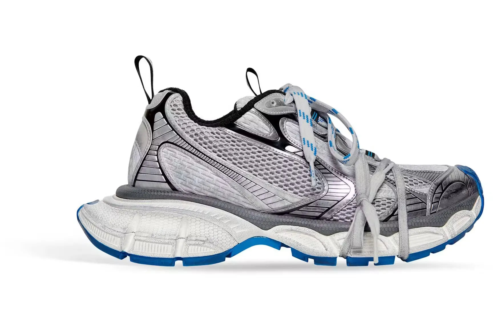 Las Balenciaga 3XL “Grey White Blue” unen expresión urbana y sofisticación técnica en una silueta impactante. Su diseño incorpora capas de malla, cuero y detalles multicolor sobre una base gris que proyecta textura, movimiento y un carácter distintivo dentro del streetwear de alta costura.