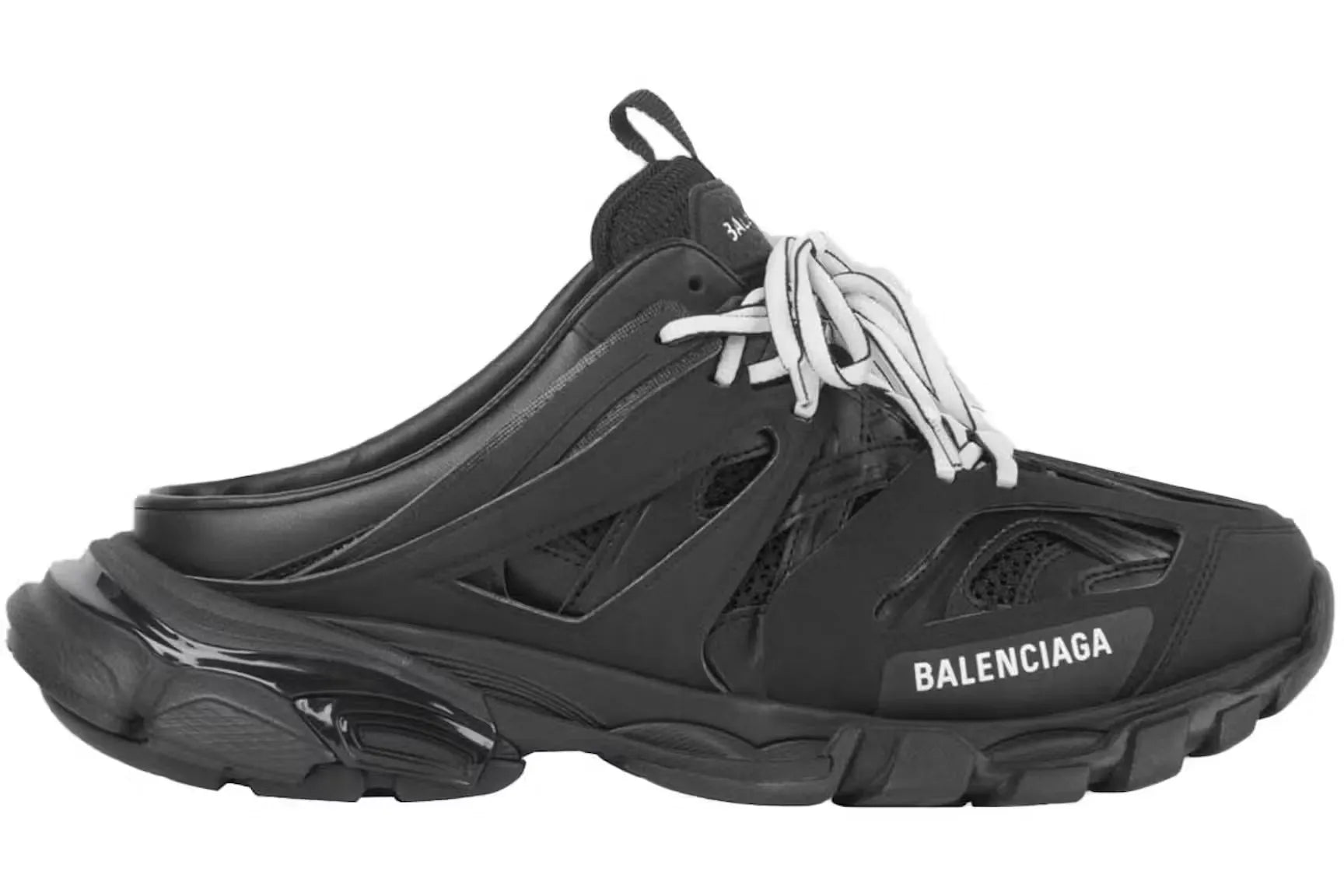 Las Balenciaga Track Mule “Black” fusionan la icónica silueta Track con una estética mule moderna. Confeccionadas en malla y nylon técnico en negro profundo, destacan por su diseño sin talón, superposiciones estructuradas y suela robusta, ideal para quienes buscan estilo urbano sin sacrificar funcionalidad.