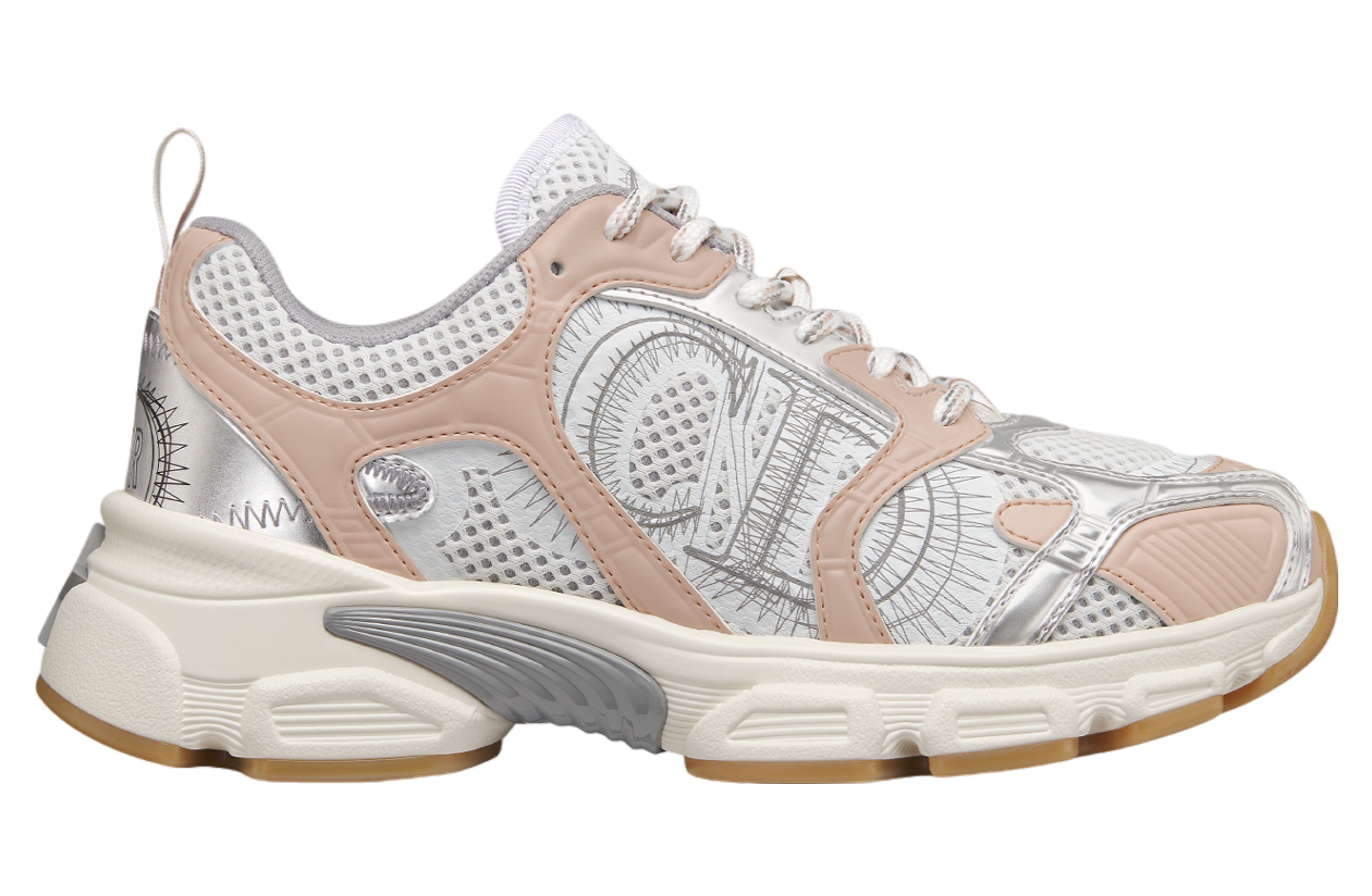 Las Dior Chrono Sneaker “White / Nude / Silver-Tone” reinventan el estilo running con carácter couture. Con upper en mesh blanco acompañado de paneles efecto cuero laminado en nude y plateado, destacan por detalles icónicos como la firma “CD” en los laterales, un parche con estrella en la lengüeta y branding “Dior” en el talón trasero. Los cordones tricolores y la suela ultraligera de EVA con una estrella—símbolo de buena suerte de Dior—redondean un diseño pensado para looks relajados con sofisticación.