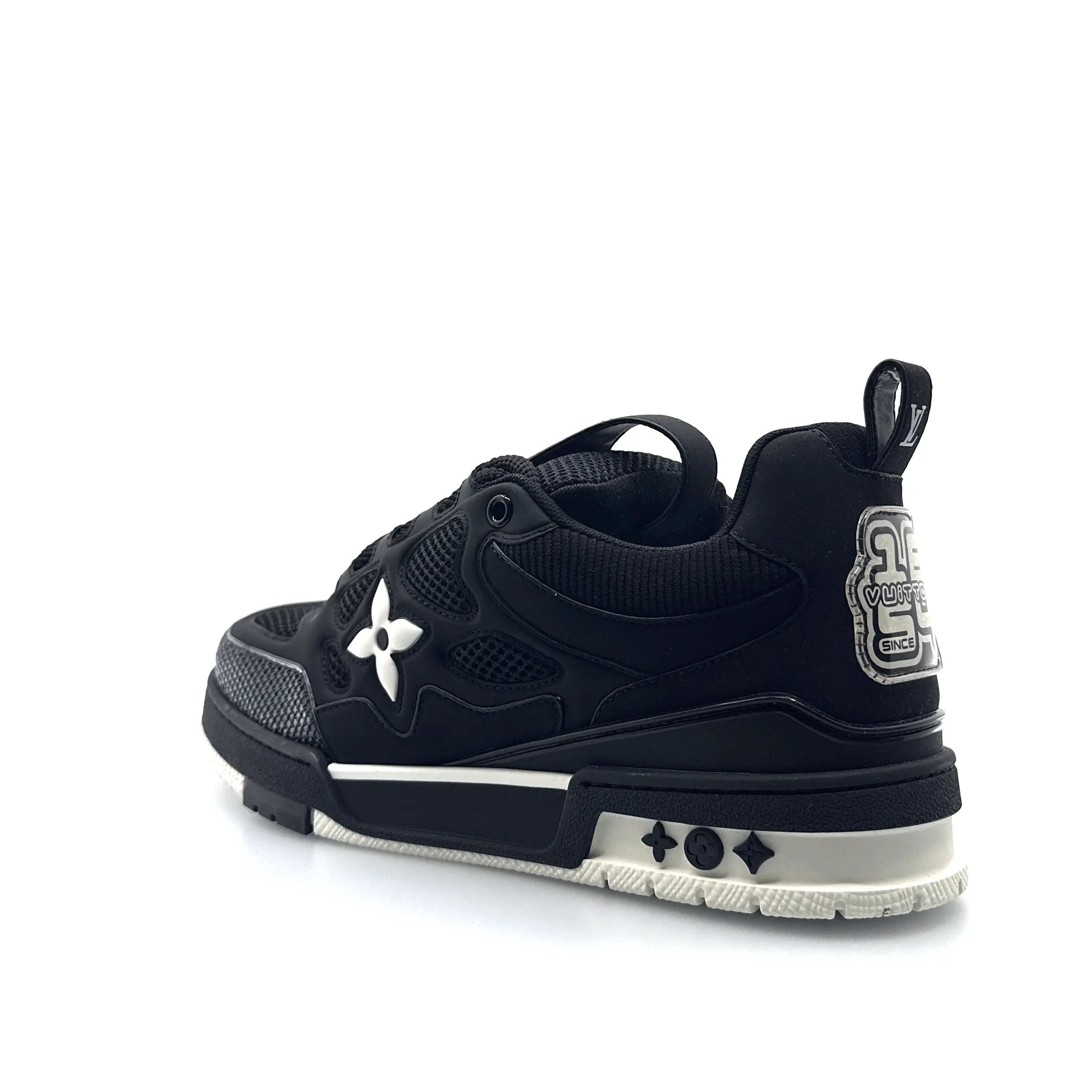 Inspiradas en la cultura skate de los años 90 y reinterpretadas bajo la visión de alta moda de Louis Vuitton, las LV Skate Sneaker en negro y blanco son el equilibrio perfecto entre nostalgia urbana y lujo contemporáneo. Con una silueta robusta, materiales premium y detalles emblemáticos de la Maison, este modelo es una declaración para quienes no solo caminan... dejan huella con cada paso.